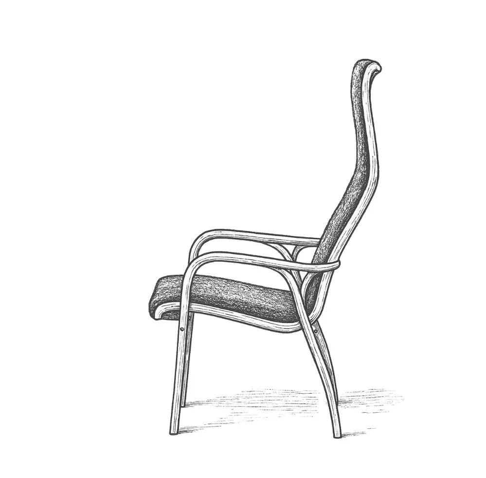 Mathsson created a series of chairs, the Model 36 Work-, Rest- and Lounge Chair, which he showed at his debut exhibition in 1936. The Work Chair was developed further with the addition of armrests and was given its final design in 1941. It was later renamed the Eva Chair.