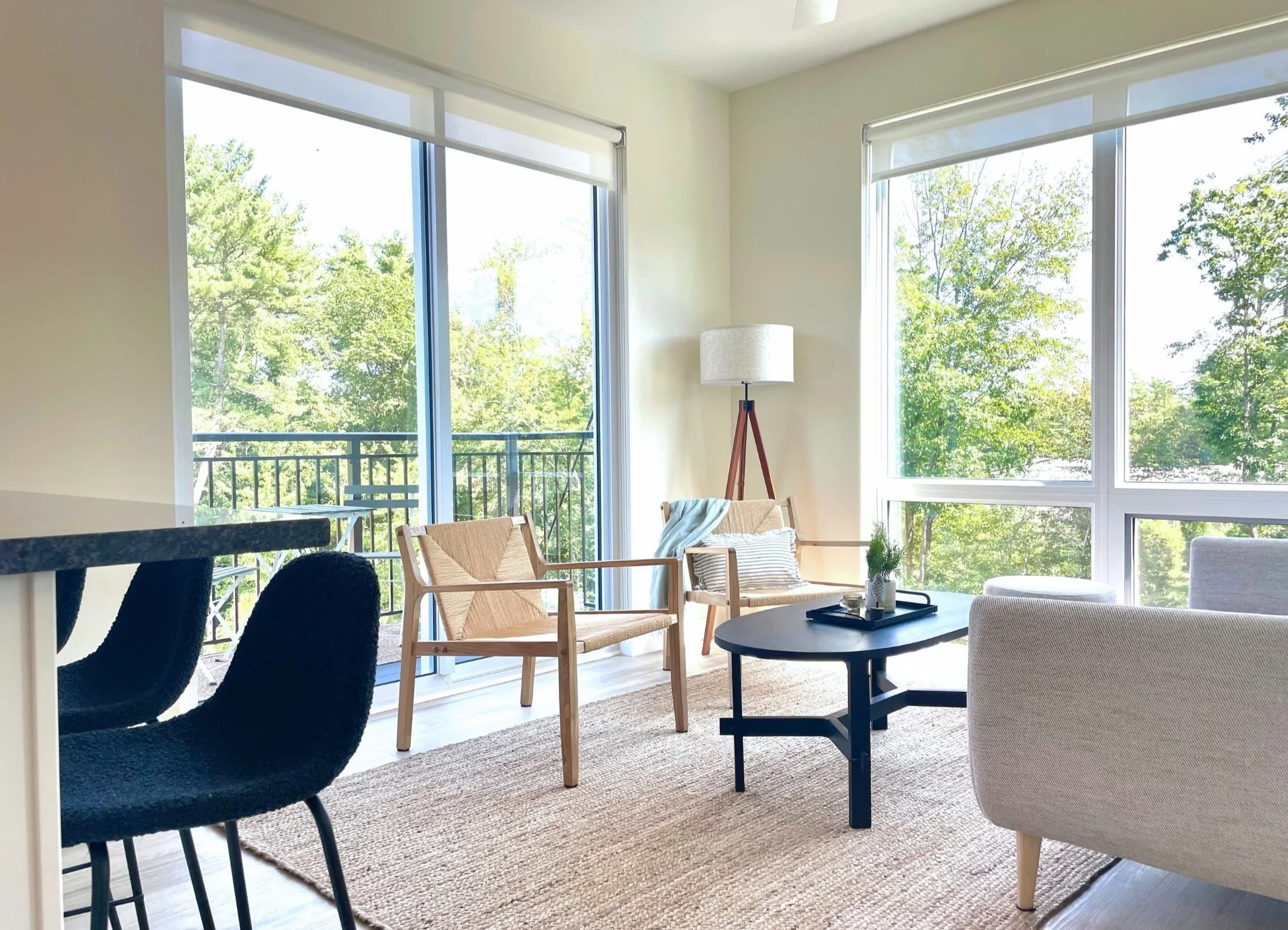 Custom staging based on the apartment building’s overall design concept; a modern take on New England style with emphasis on coastal influences. I assessed the unit floor plans and put together a furniture- and styling-plan adaptable to all units as needed for photography and walk-thrus.